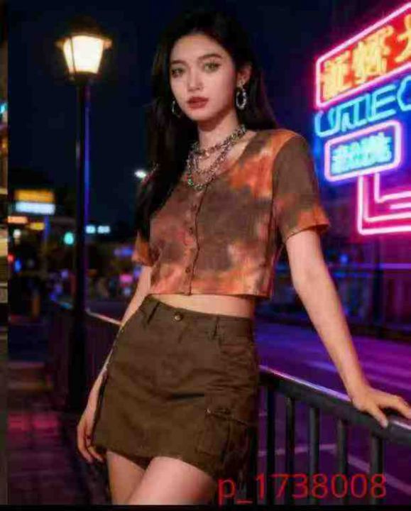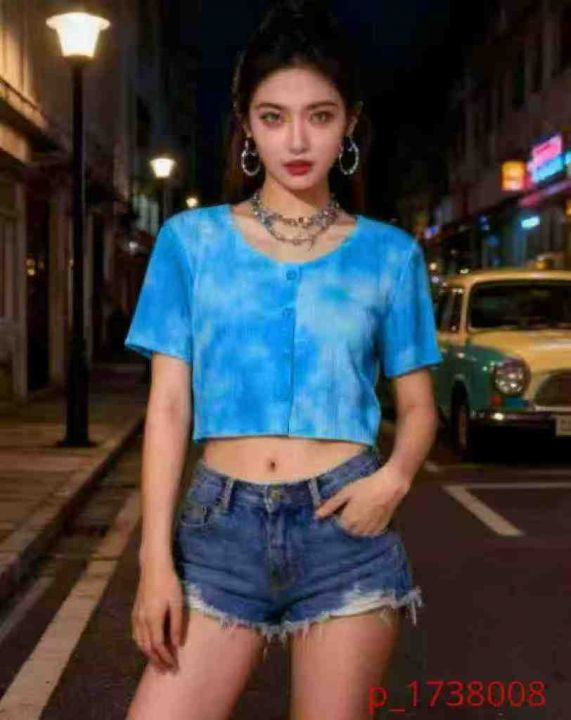 夏季新款弹力修身显瘦甜辣妹扎染针织短袖开衫,独立包装,均码面料柔软舒适...