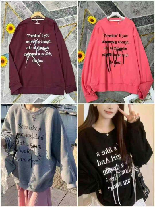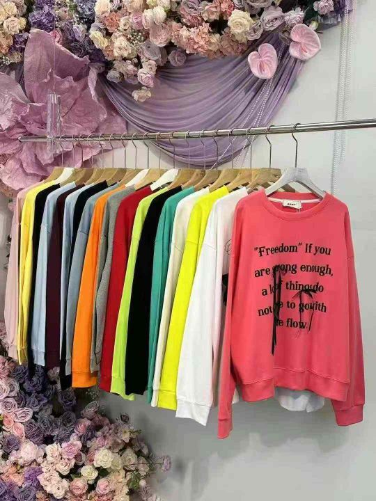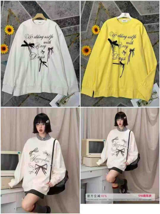 上身长袖卫衣系列款[太阳]全清13.8,580件,均码,重磅设计感字母图案蝴蝶结时尚宽松甜美可爱圆领卫衣,系列整款,糖果色,有质感,拒绝❌软塌塌,有份量,挺阔有型,后领包边到肩,高品质,独立包装带吊牌,品质[强],分货➕1