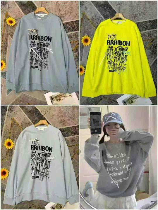 上身长袖卫衣系列款[太阳]全清13.8,580件,均码,重磅设计感字母图案蝴蝶结时尚宽松甜美可爱圆领卫衣,系列整款,糖果色,有质感,拒绝❌软塌塌,有份量,挺阔有型,后领包边到肩,高品质,独立包装带吊牌,品质[强],分货➕1