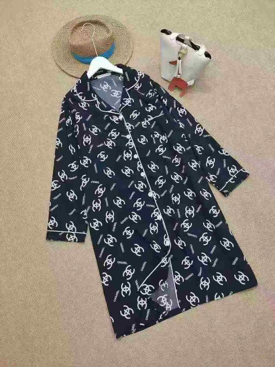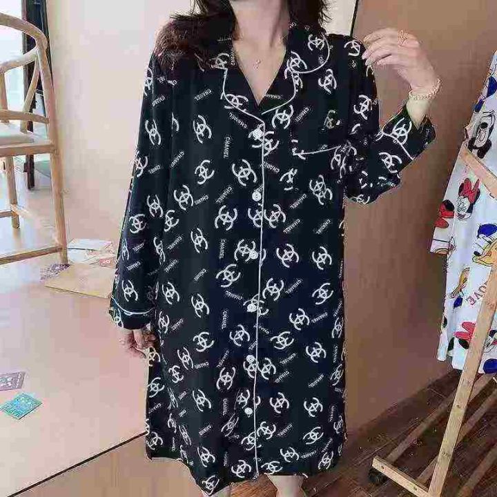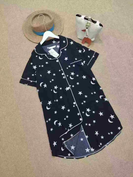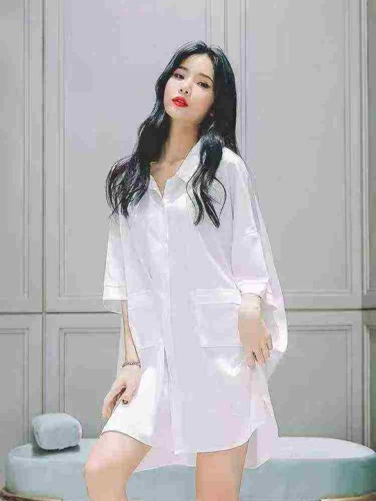 [月亮]:时尚春夏中长款垂顺家居衬衣睡裙