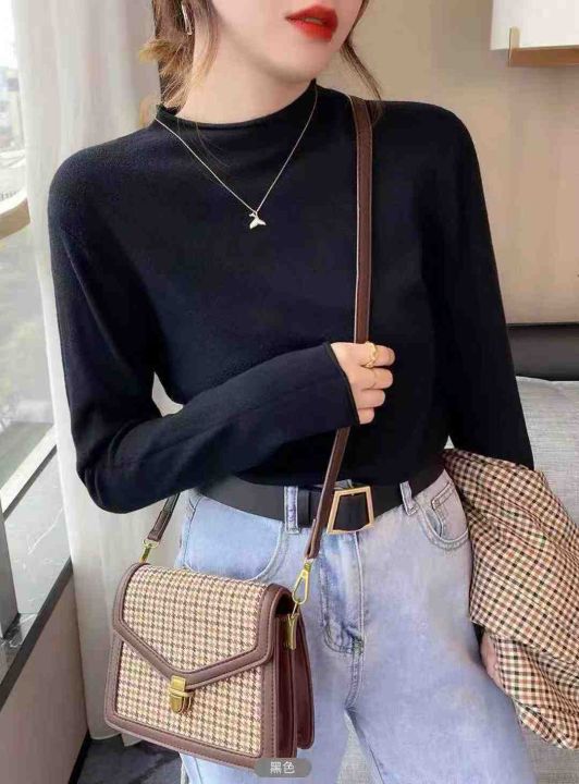 秋冬新款高品质网红弹力修身显瘦卷边半高领净版简约包芯纱打底外穿套头毛衣,单款2色,独立包装,均码面料软糯Q弹,2000件,全清6.9元超低价秒杀!分货加一!