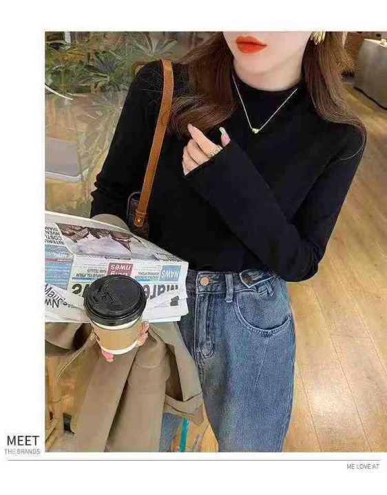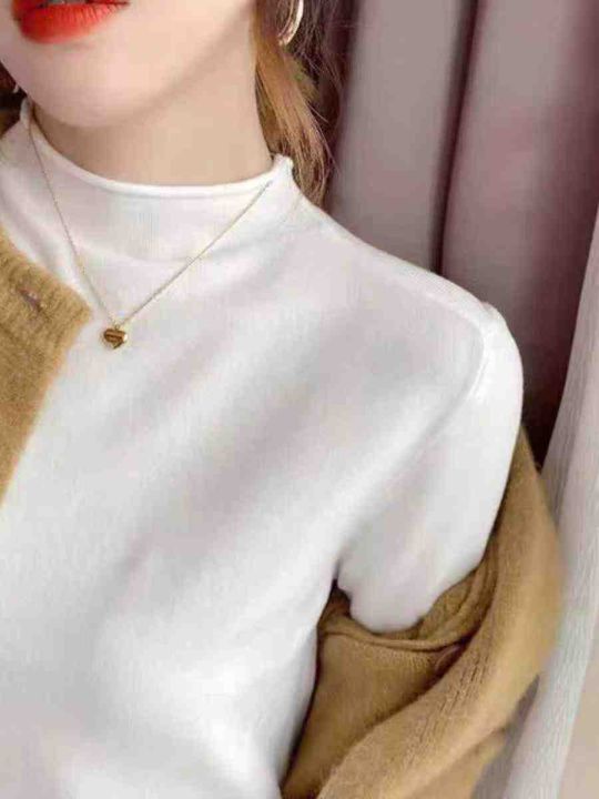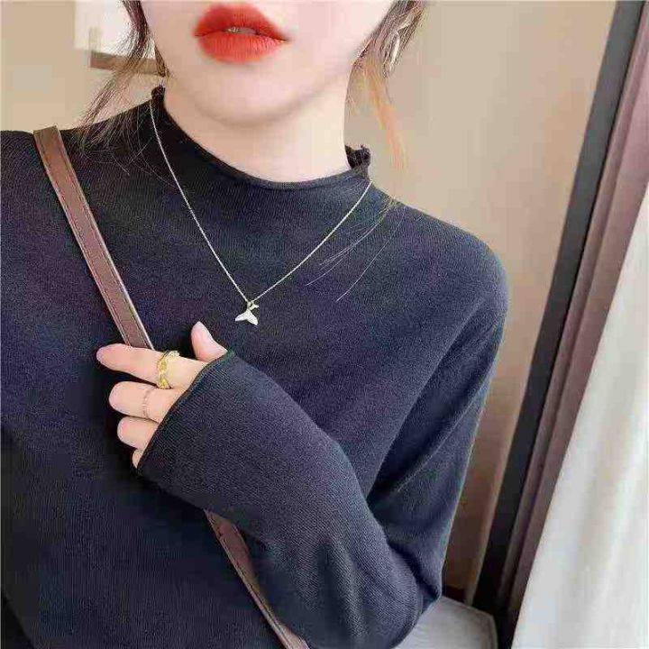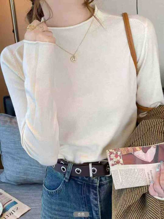 秋冬新款高品质网红弹力修身显瘦卷边半高领净版简约包...