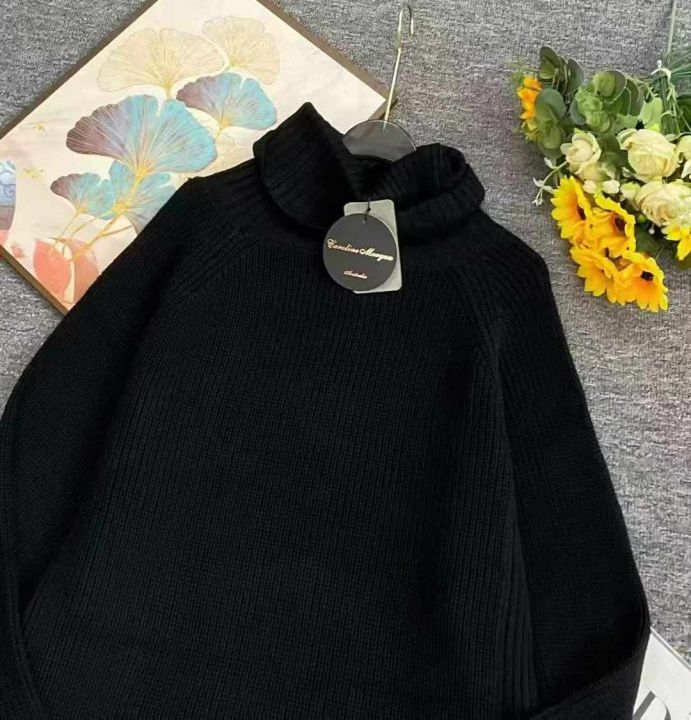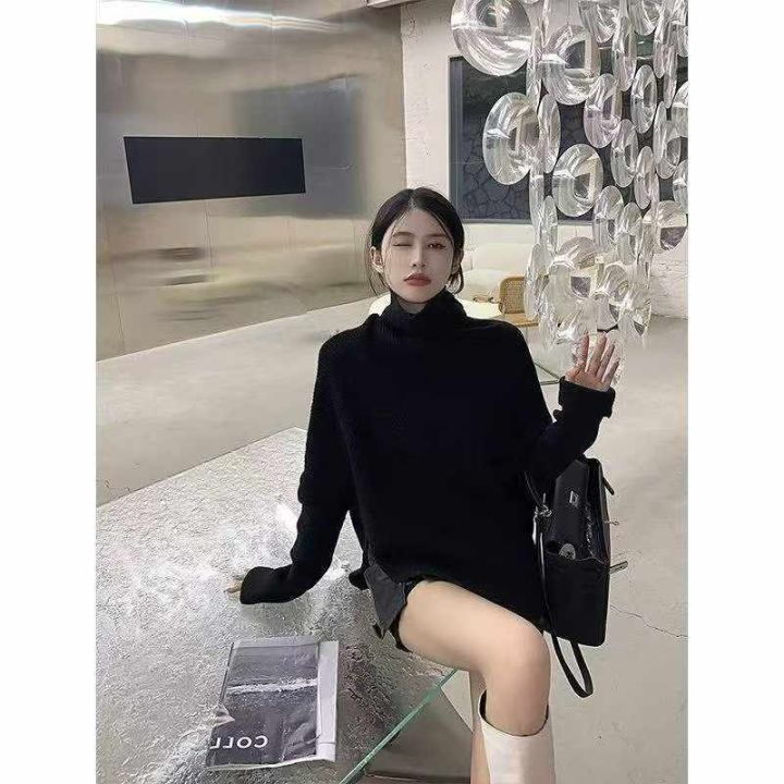冬季新款宽松慵懒风外贸原单品牌女装高领套头毛衣,独...
