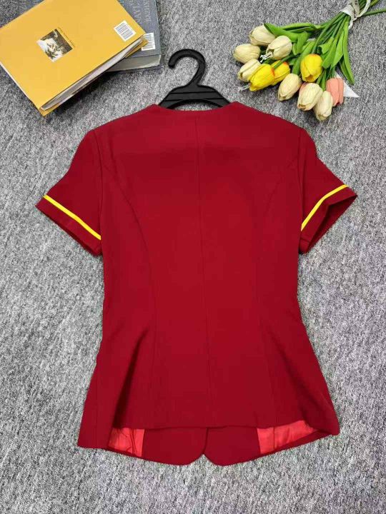 捡漏245件枣红色立领短袖时尚气质南航航空制服酒店前台迎宾接待职业外套,独立包装,码数S-4XL,全清价3.9元,分货加1