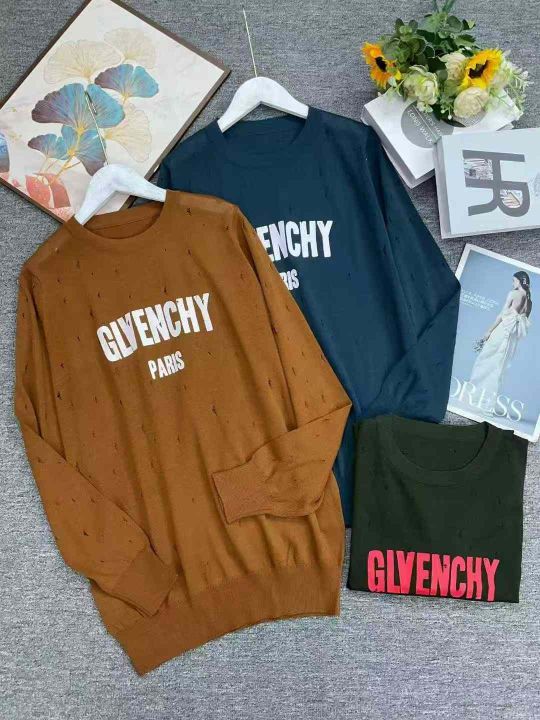 早秋新款女装镂空冰丝字母印花圆领套头毛衣,独立包装...