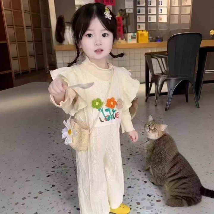 100多套2025新款春秋季儿童宝宝洋气花朵连体裤打底衫...