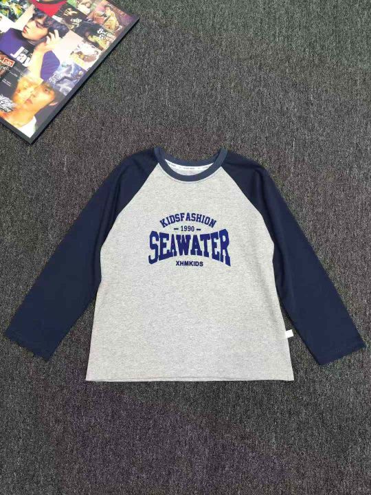 纯棉男童长袖拼接款t恤秋款春季新款撞色袖插肩袖中大童全棉打底上衣 独立包装 数量3000件。码数90-110-120-130-140-160 全清4.5 分货+0.5