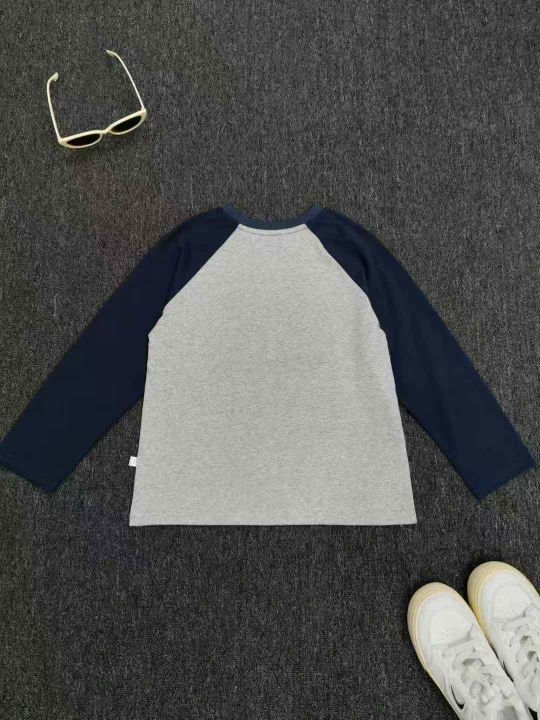 纯棉男童长袖拼接款t恤秋款春季新款撞色袖插肩袖中大...