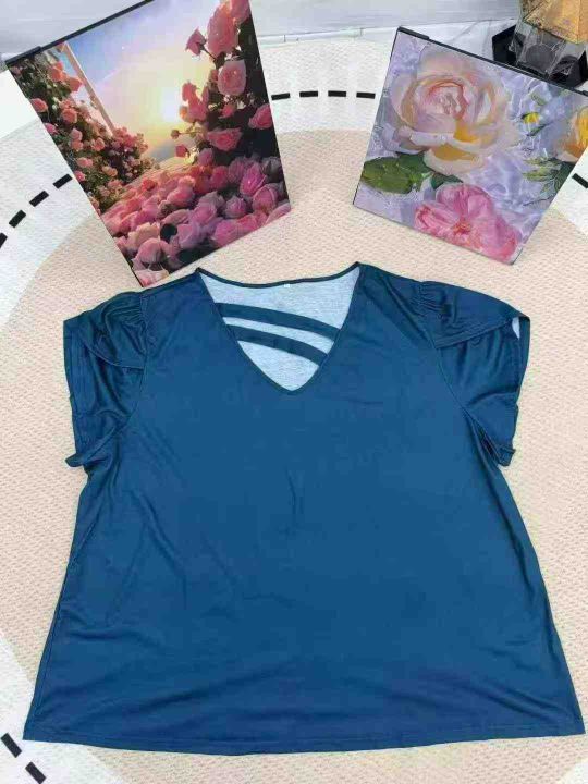 4.9清(*****50)450件欧美外贸原单女T恤V领花瓣袖...