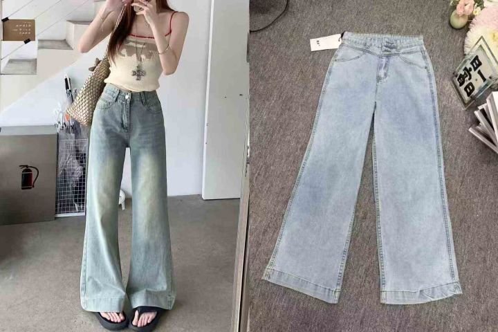 13.8清580条女靓妹宽松直筒牛仔裤 高腰垂感阔腿拖地裤...