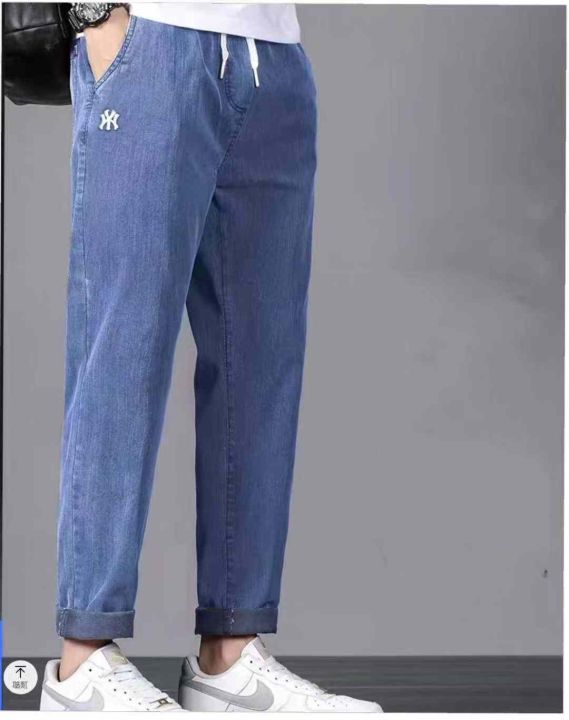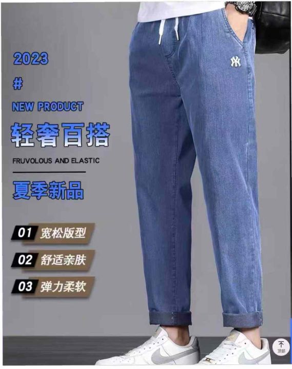 早秋新款洗水棉高弹力男士松紧腰牛仔裤,独立包装带吊...