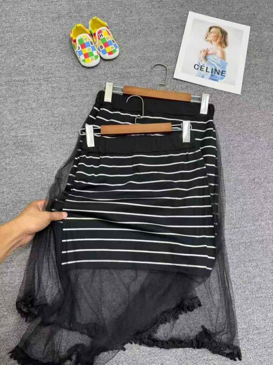 2025夏季休闲新款高腰松紧半身裙显瘦条纹网纱裙,独立...