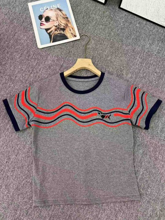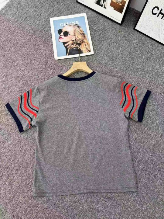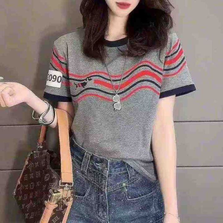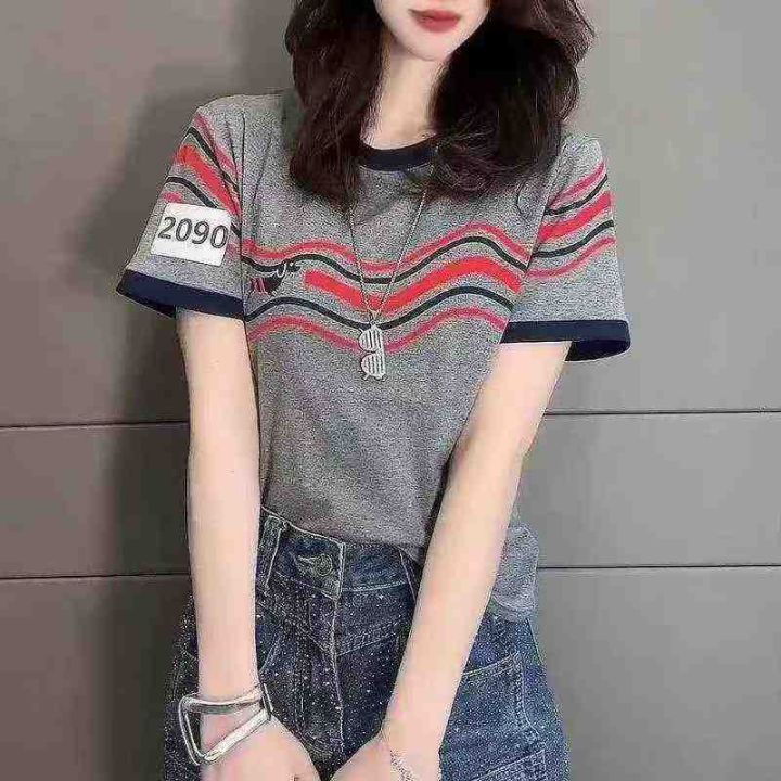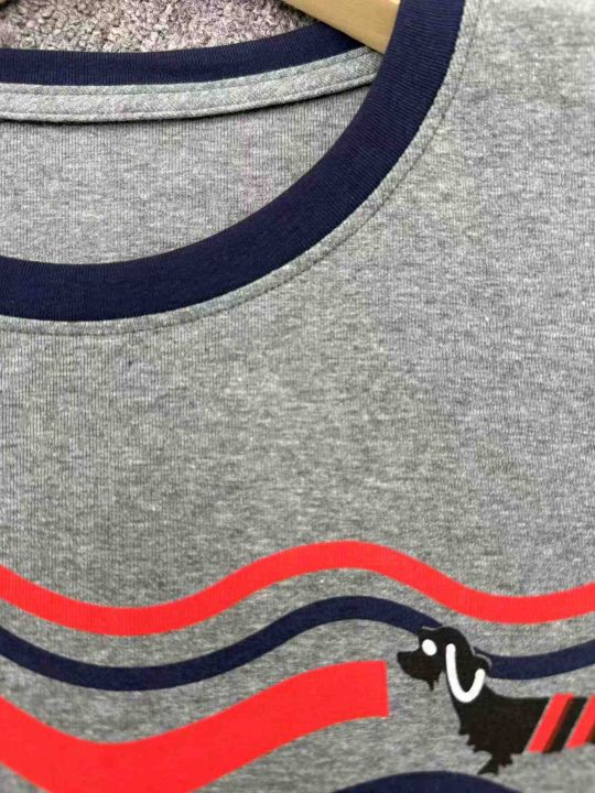 2025短袖女夏季新款圆领波浪小狗撞色印花纯棉T恤复古宽松显瘦上衣潮,码数90件,码数M-3XL,独立包装,货品干净漂亮,