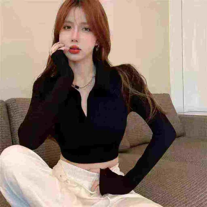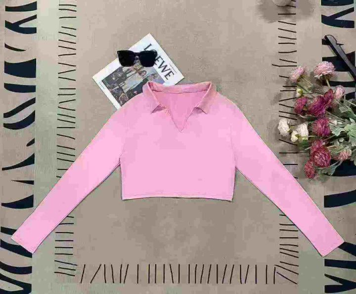 1200件美式复古辣妹polo领显瘦露脐紧身长袖T恤,尺码xs-XL ,面料软糯,四面高弹,做工精良,零次品,全清价4.8元,分货+0.5。