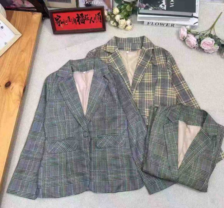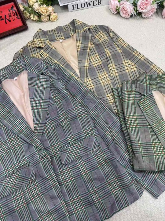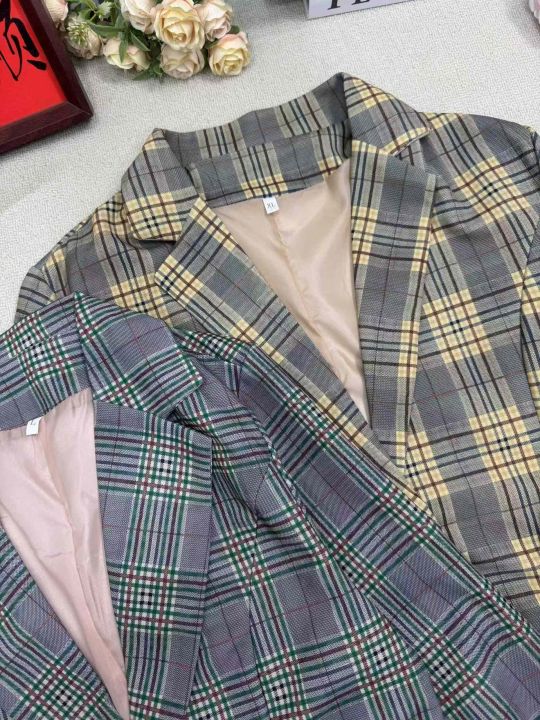韩版休闲复古格子小西服外套·单款三个色L-5xL独立包装70件全清8.8不分货