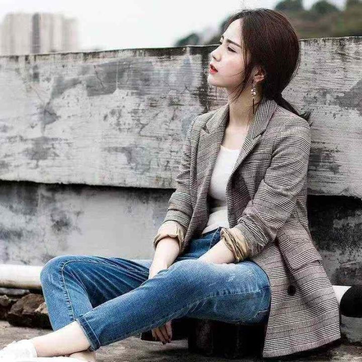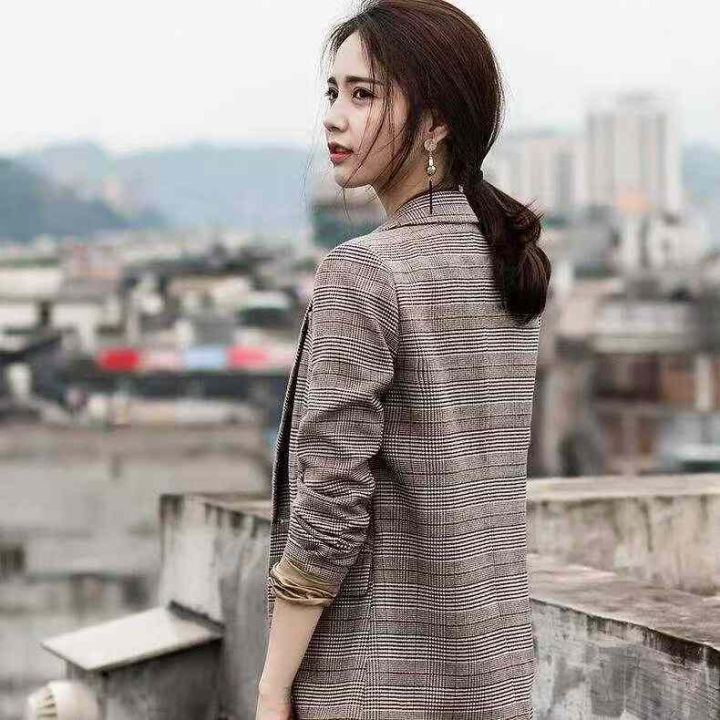 韩版休闲复古格子小西服外套·单款三个色L-5xL独立包...