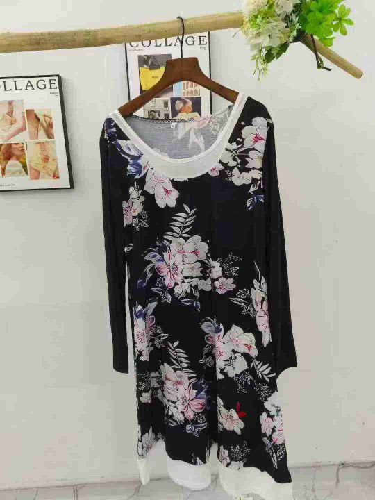 欧美外贸款垂坠质感印花中长款长袖T恤裙衣 数量160件左右 尺码S--2XL 单款两个色印花不同 独立包装 模特图类似供参考 货品干净整洁