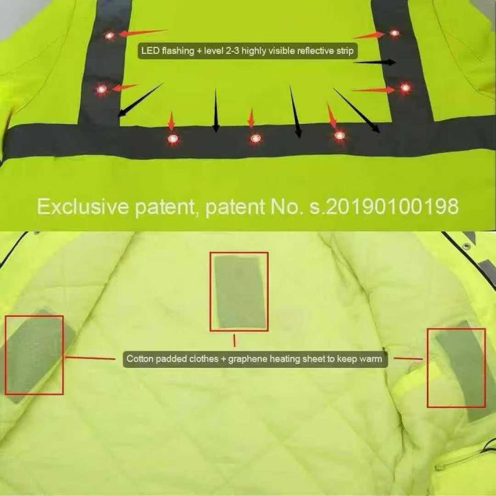 保暖发热服,高能见度LED灯,防雨防雪,真正的石墨烯发热圈,三档热度调节...