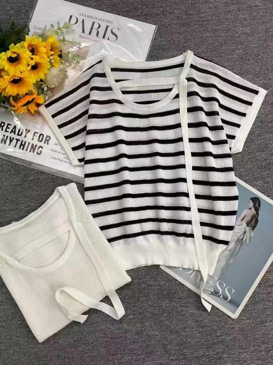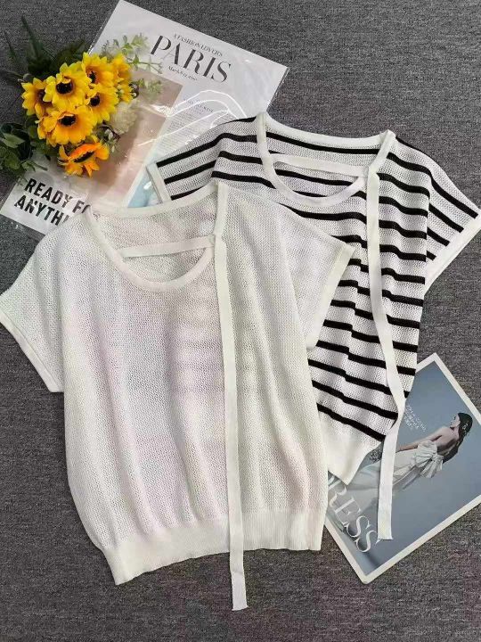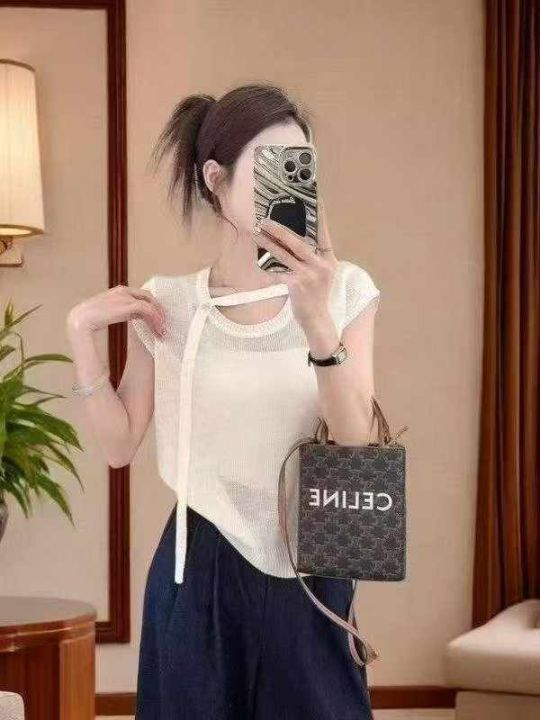 夏季新款韩系冰丝时尚气质设计款针织短袖,独立包装,...