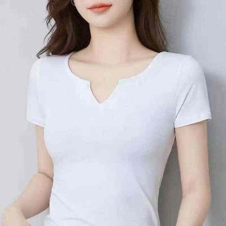 纯棉V领短袖t恤☕️450件全清5.8 分货+1 ,码数S到XL,图片3色,独立包装,V领显瘦短袖T恤夏季新款打底衫上衣