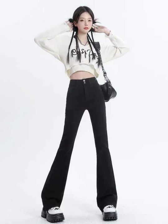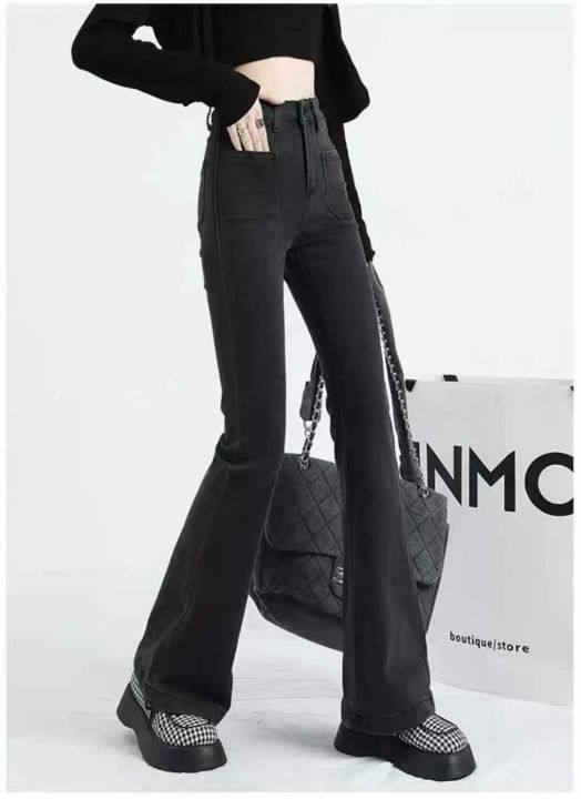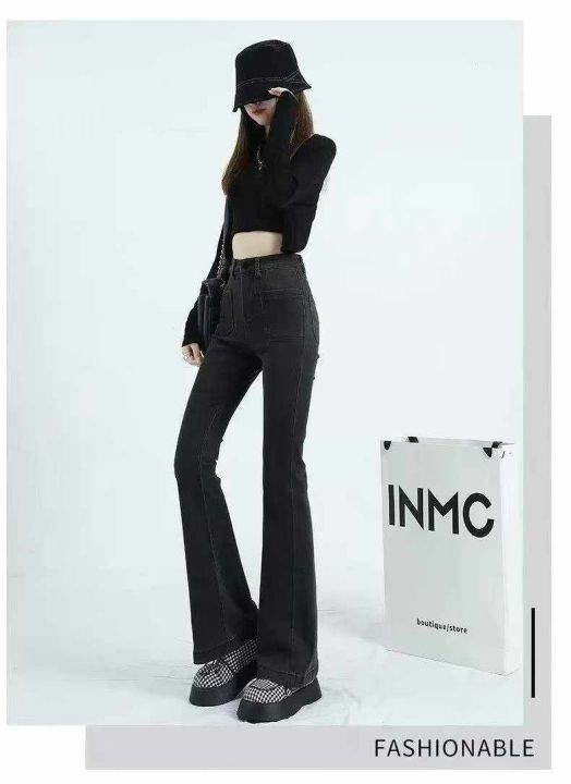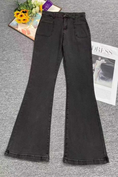 秋季新款洗水棉网红高弹力女装微喇叭牛仔裤,图片款,...