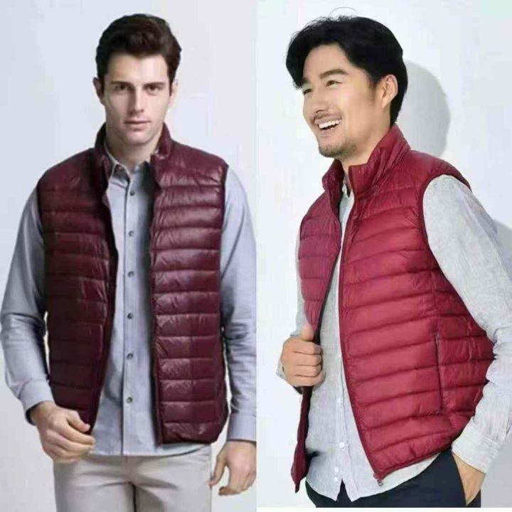 羽绒马甲男2025秋冬轻薄保暖大码短款宽松背心坎肩男装外套潮流时尚男羽绒马甲,大部分都是酒红色,另外两个色(蓝,正红)少,内里白鸭绒舒适保暖,袖口下摆松紧设计,牢牢锁温[666],不挑人不紧绷,口袋拉链设计,送收纳袋,防便 携带[强],✅性价比直接拉满,100件起分货26.8