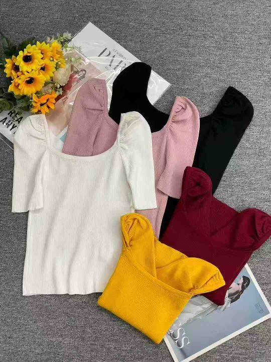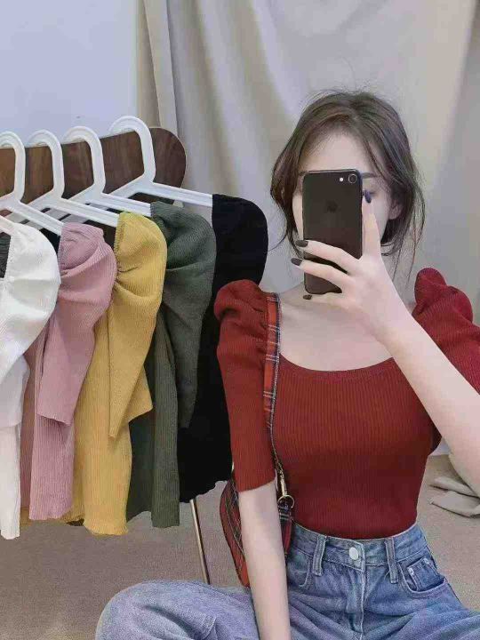 夏季新款复古法式方领泡泡袖锁骨冰丝针织短袖t恤,独立包装,均码面料柔软舒适弹力大,312件,全清5.9元超低价秒杀!分货加一!