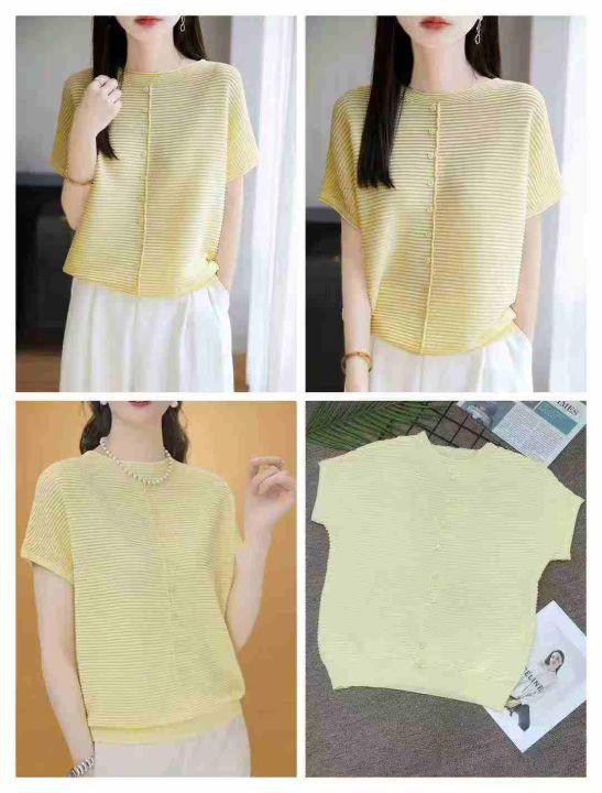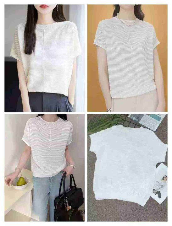 2025年夏季新款时尚波浪纹针织短袖女宽松洋气遮肉显瘦百搭短袖上衣,品质非常好,独立包装,均码,700件,清7.9,分➕1