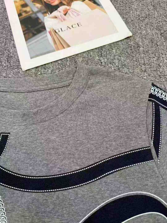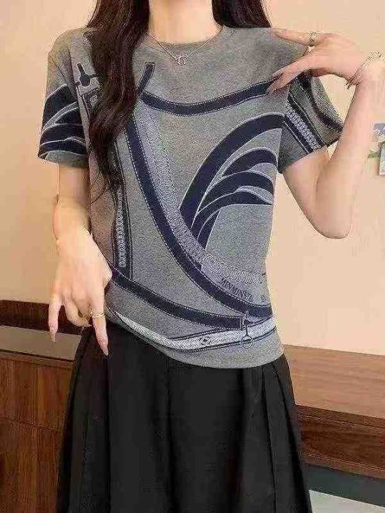 高品质夏季新款圆领灰色纯棉短袖T恤时尚高级印花独特设计感小众女上衣,带弹力,数量300件,码数S-2XL,有独立包装,货品干净漂亮,