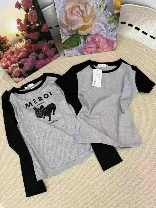 1230件夏季超好看辣妹撞色拼接字母长袖短袖t恤女春秋修身显瘦休闲百搭短款上衣!弹力