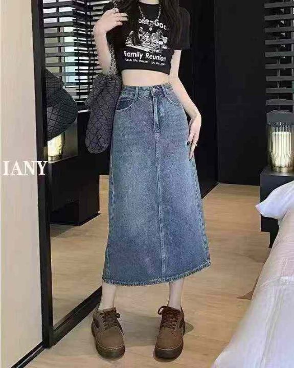 编号:K613#春秋辣妹显瘦中长款开叉牛仔半身裙1500左...