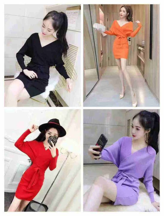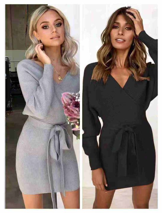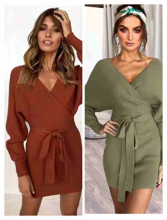时尚性感女人味V领短袖编蝠袖连衣裙高腰绑带修身显瘦包臀针织毛衣裙,实物短袖,独立包装360件左右,清8.9,分➕1