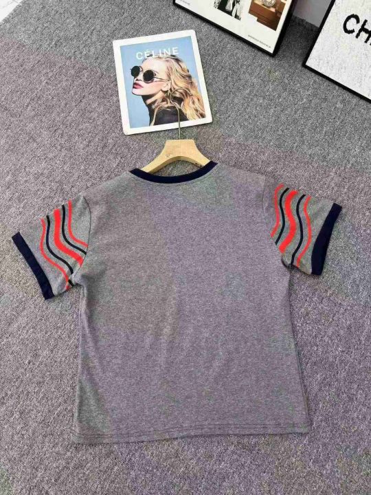 清8.82025短袖女夏季新款圆领波浪小狗撞色印花纯棉T恤...