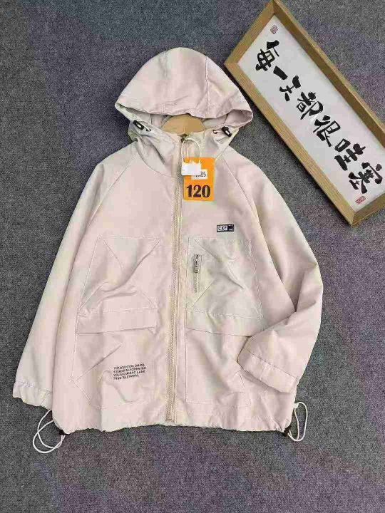 童装连帽冲锋衣120件13.8,有内衬,双口袋,下摆抽绳...