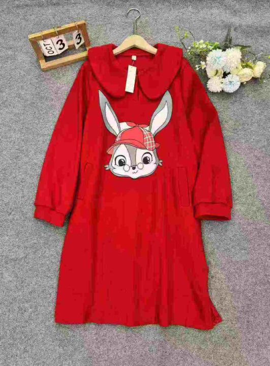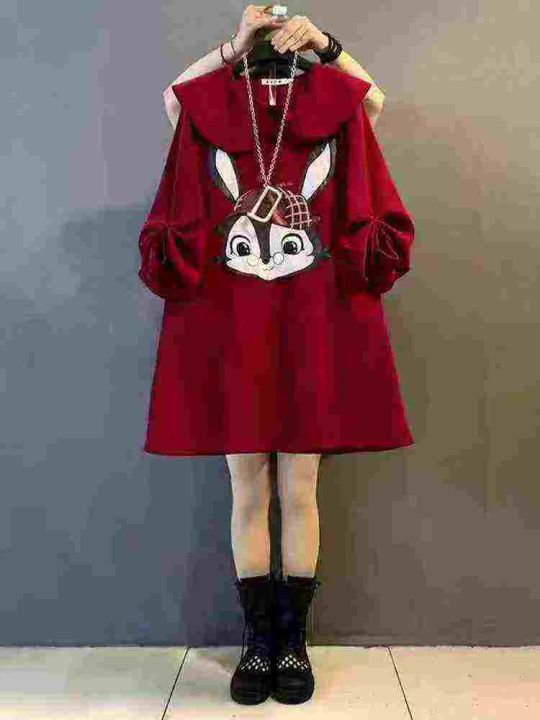 亏本清仓34件秋冬韩版卡通印花连衣裙,下摆开衩设计,...