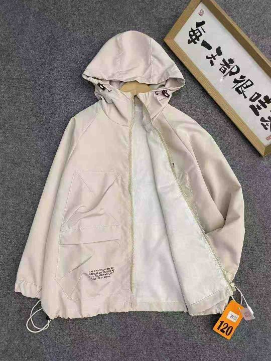 童装连帽冲锋衣120件13.8,有内衬,双口袋,下摆抽绳...