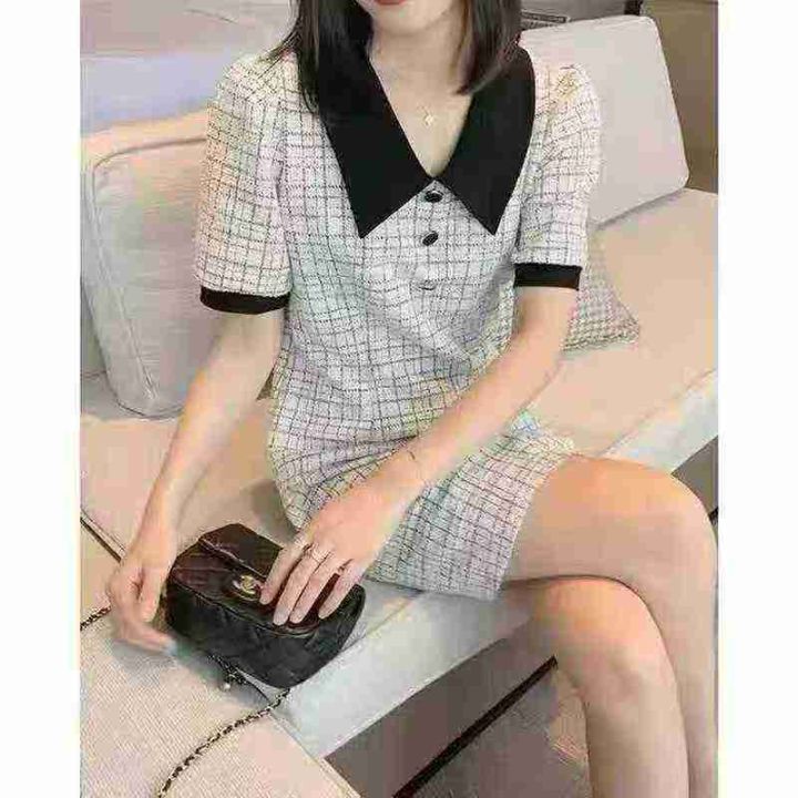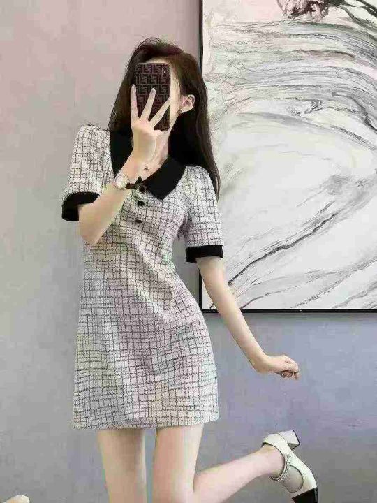 数量:195件,全清10.8,法式复古赫本风裙子,2025年夏季新款小香风娃娃领连衣裙,面料柔软带弹力高级显瘦连衣裙,独立包装,码数:S~XL