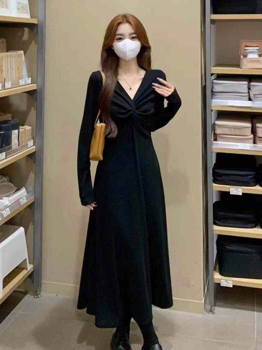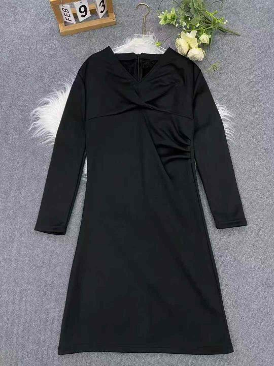 加绒连衣裙121件5.5,女装显瘦v领收腰垂感气质连衣裙...