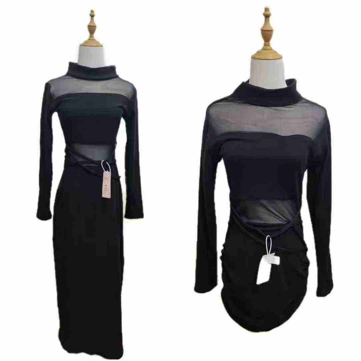 [月亮]:网纱拼接德绒辣妹长袖连衣裙