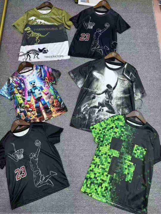 3.5元全清,33640件 外贸中大童3D印花T恤,短袖跨境童装短袖T系列印花儿童休闲上衣,带有后领包边,两个面料分别,网眼面料 涤纶面料,透气舒适,码数110-160,都是独立拉链包装!分货50起4.8