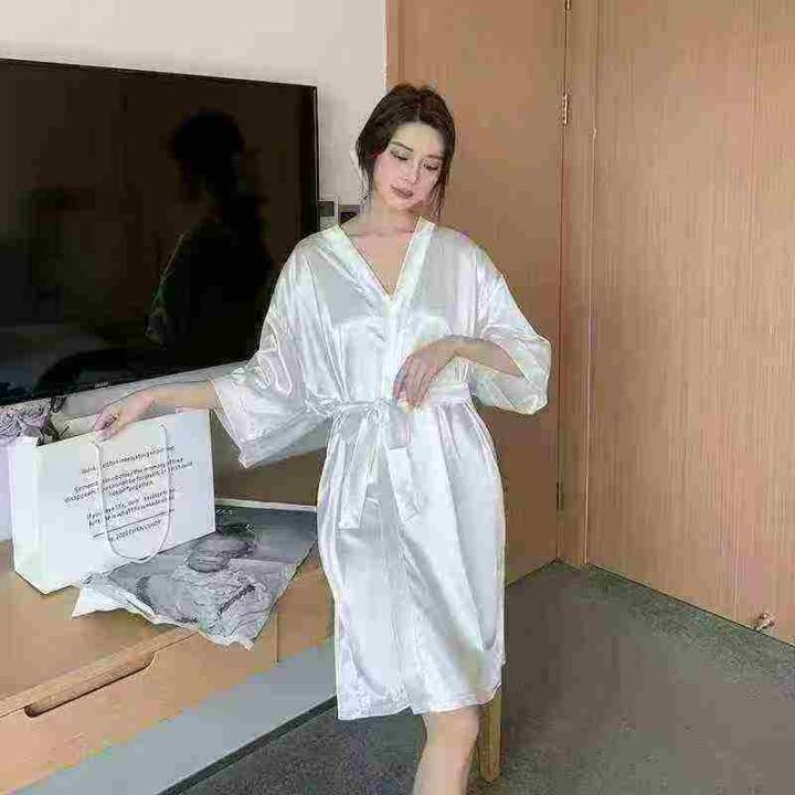 200多件2025新款性感纯欲风睡袍女日系冰丝床上睡裙薄中长款浴袍睡衣,均码!独立包装!缎面!福利价4.8