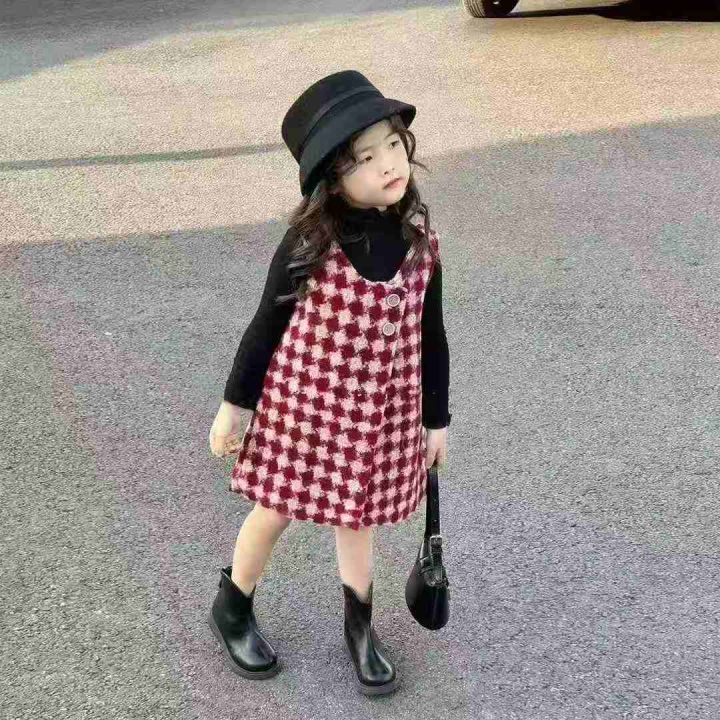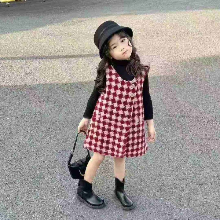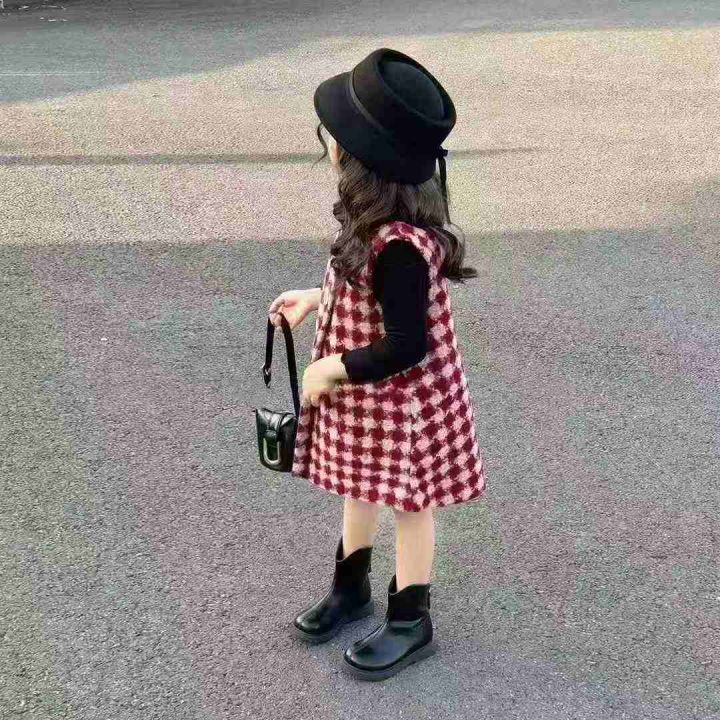 [月亮]:潮童韩版毛呢马甲连衣裙