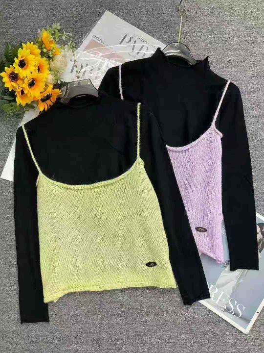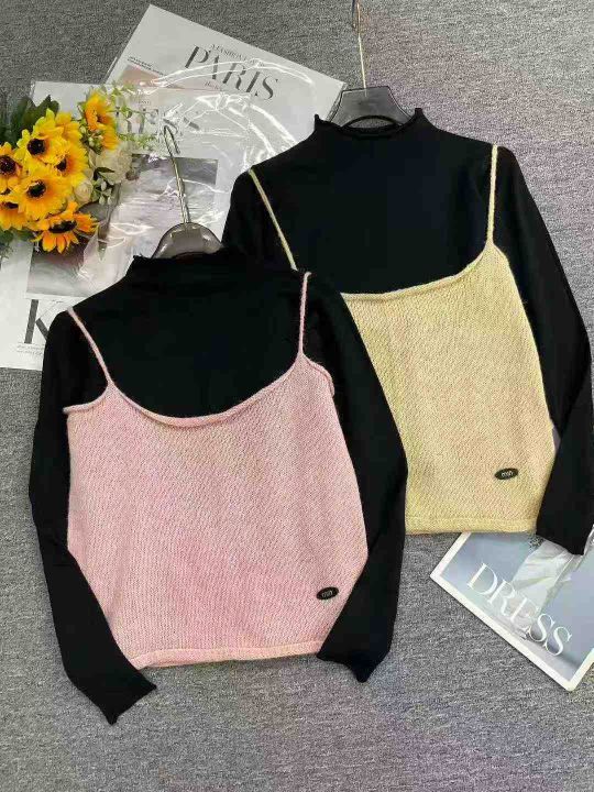 女装早秋新款复古港风chic叠穿v领针织吊带背心马甲+包芯纱套头毛衣2件套, 独立包装,面料软糯舒适弹力大,660套,全清7.9元超低价秒杀!分货加一!