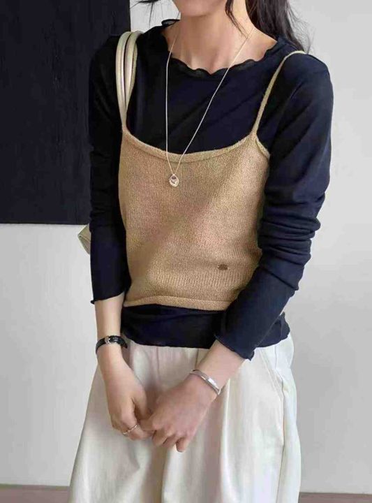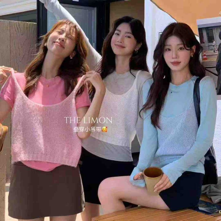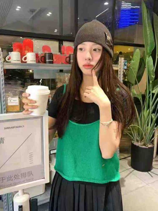女装早秋新款复古港风chic叠穿v领针织吊带背心马甲+包...