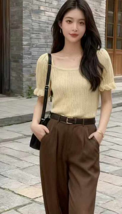 夏季新款女装冰丝设计款小众短袖针织毛衣,独立包装,均码面料柔软舒适,35...