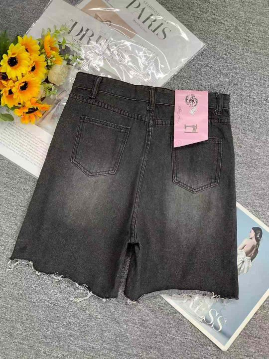 夏季新款女装破洞设计款洗水棉牛仔短裤,独立包装带腰...