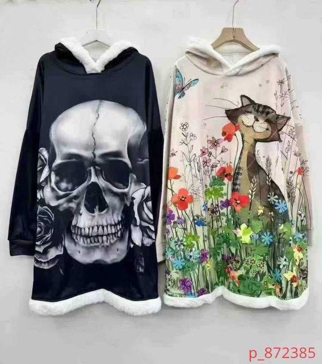 2335件左右外贸款大版型加绒双面印花连帽卫衣/卫衣裙,花型比较多,均码,全部独立包装。全清 1.99 _@_@