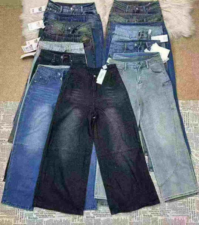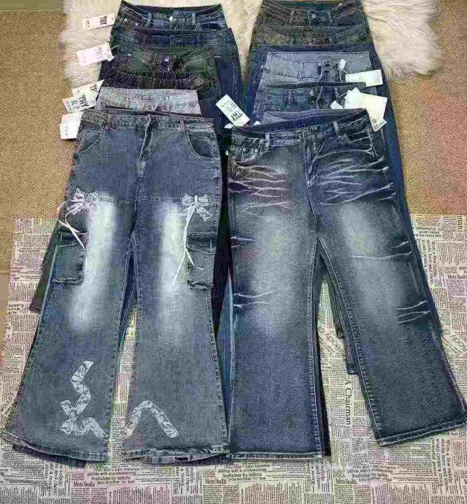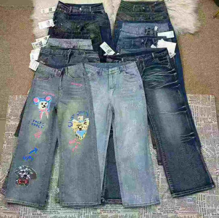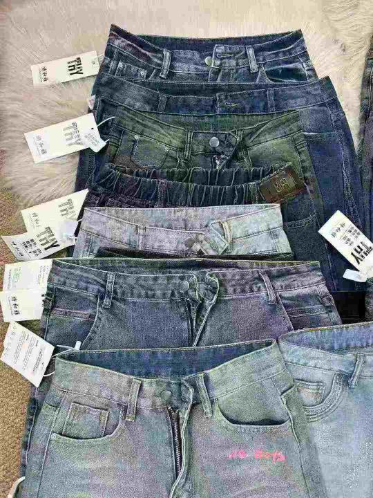 精品女装 高品质洗水棉女士小整杂款牛仔直筒阔腿裤一批,码数都有,s-5xl码,货品新净,有些有吊牌,有些有腰牌,少部分没有。独立包装已拆除。1900件左右,全清12.9超低价秒杀,分货加一!