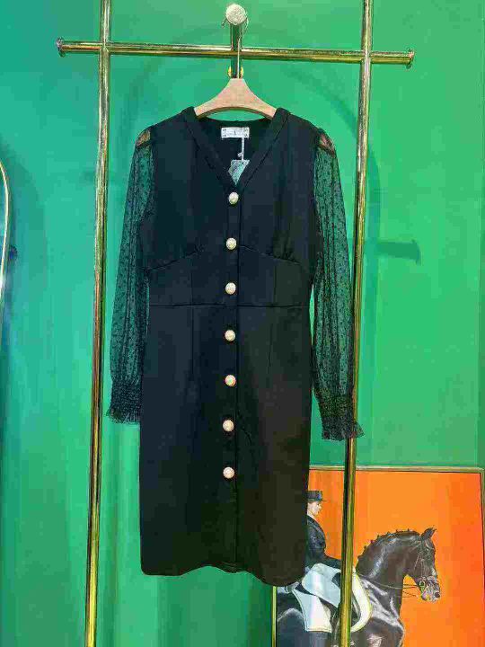 130件左右春秋新款气质黑色设计感泡泡袖V领修身中长款连衣裙!尺码S-XL高弹力!专柜品质!独立包装!全清13.8