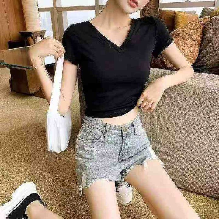 靓妹双V领短袖121件4.9,面料柔软高弹力,码数S-L,独...